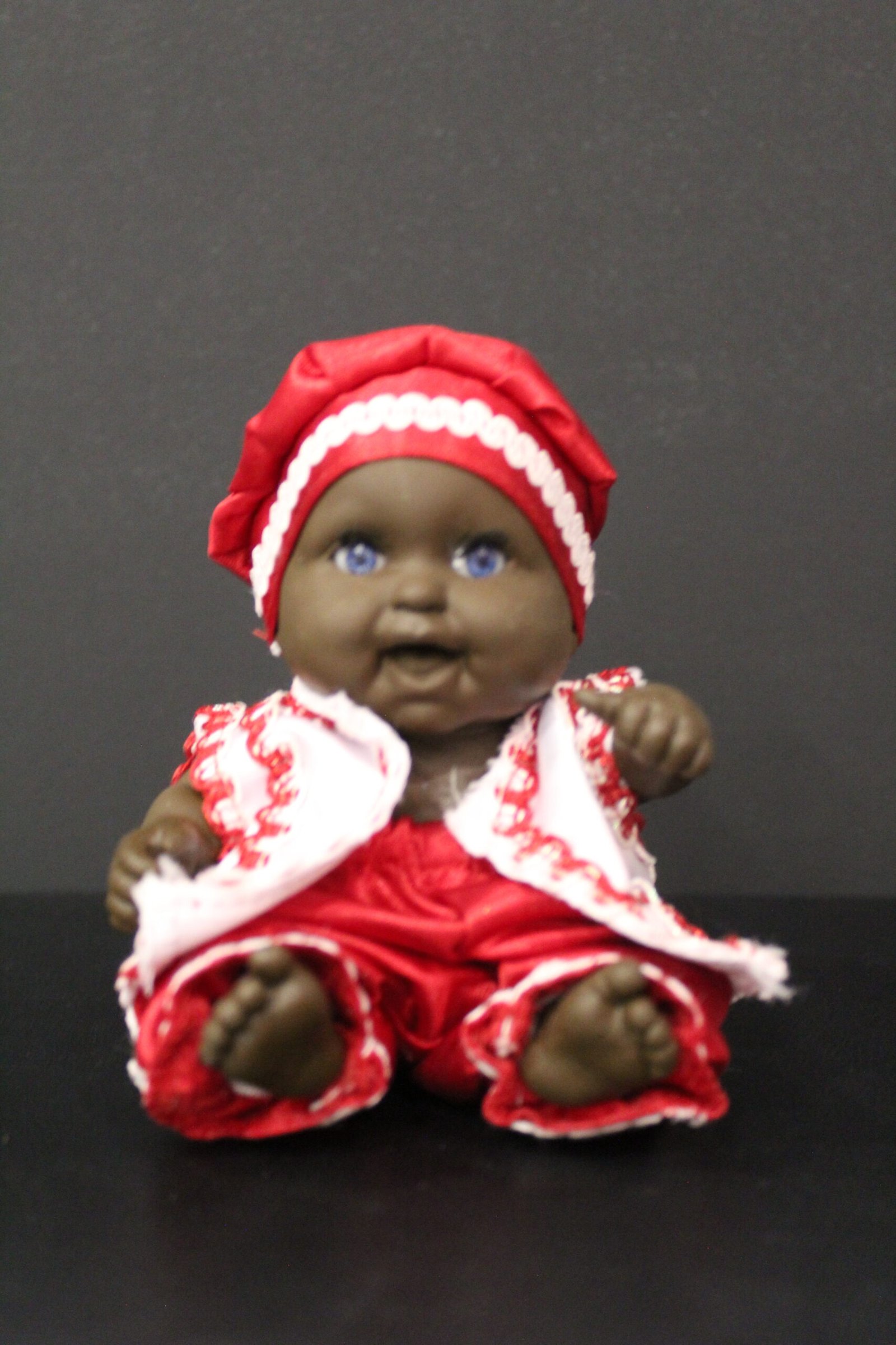 En la representación de Nenuco Shango, es probable que se combine la estética de los muñecos Nenuco con elementos que simbolizan a Shango, como su hacha, que representa su poder, o colores como el rojo y el blanco, que son emblemáticos de esta deidad.