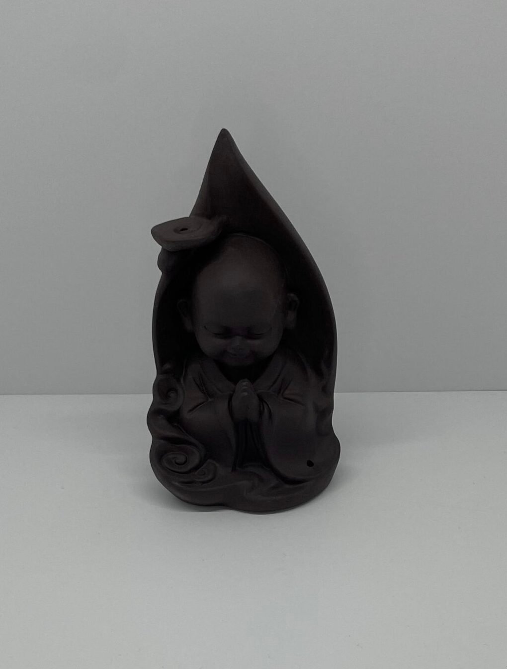 Un quemador de incienso de reflujo con diseño de Buda rezando (8.5×15.5 cm) es un objeto decorativo que crea un efecto de cascada de humo, aportando un toque espiritual y de serenidad al ambiente.